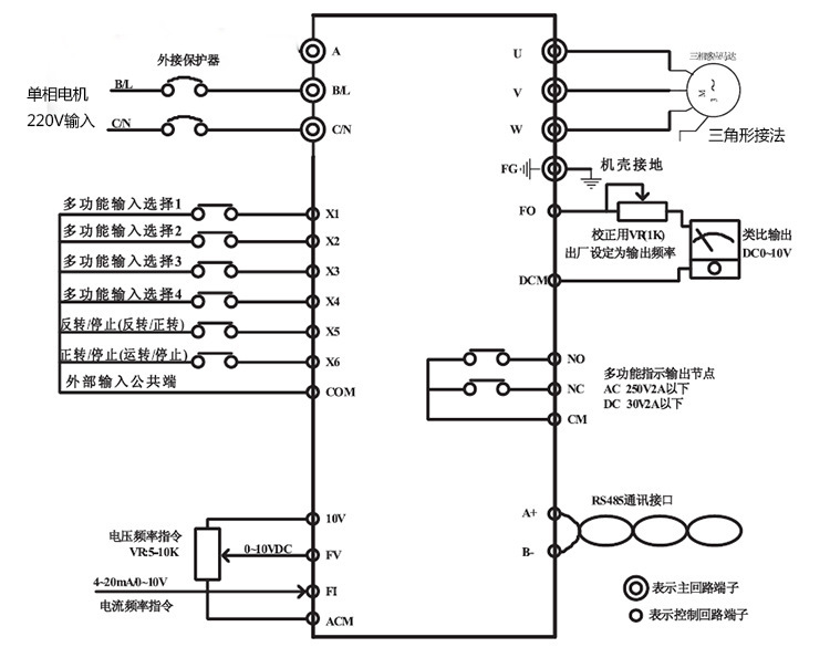 11.多功能繼電器輸出,實現(xiàn)運轉(zhuǎn)中、頻率到達(dá)、外部異常等各種狀態(tài)時繼電器輸出